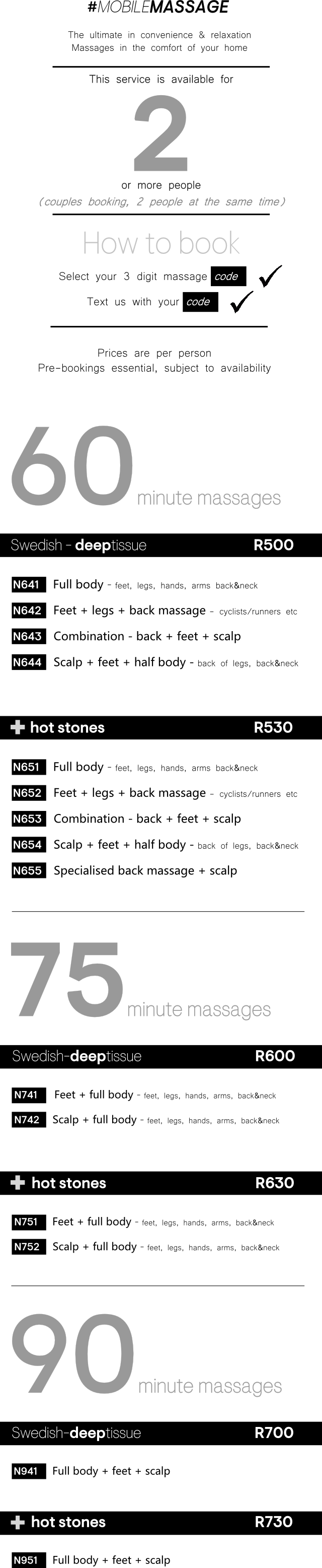 Home Mail: info@puremassage.co.za?subject=Pure Massage Booking Enquiry&body=Welcome to Pure Massage, please assist us with information to help speed up your booking process.